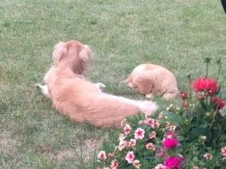 The much anticipated Zephyr arrived at my house on Friday evening. He’s a little (actually not so little!) bundle of golden fluff, with a coal black nose and the cutest little pink tongue. If you can’t tell from that description and his picture, he is a Golden Retriever. So, the usual potty-training, teaching him to walk on a leash, learn his name, and not chew on everything in the house is as I expected, although it’s been ten years since I had a puppy, and I forgot some of the details during that time. What I didn’t expect is that my older dog does not adore him.